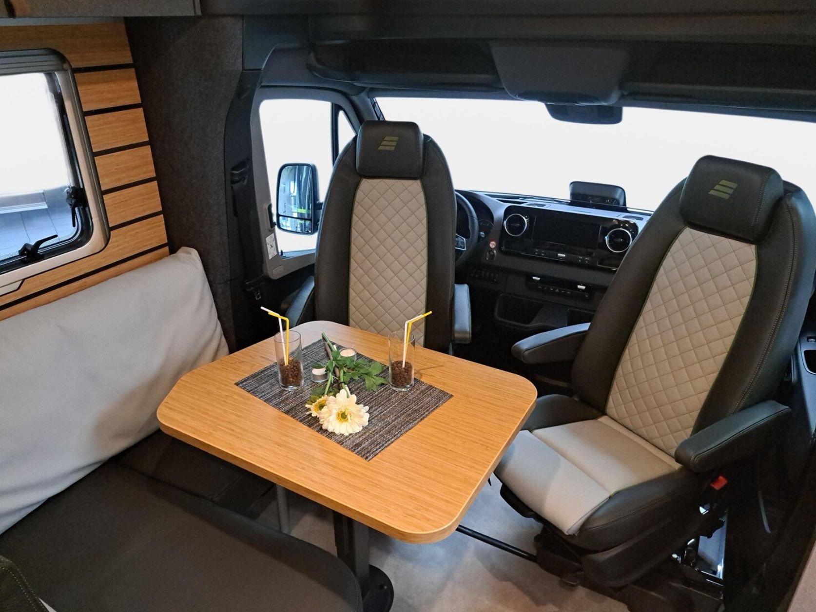 Stilvolle Lederausstattung, Besondere Innenausstattung mit viel Holz, Filz und Leder.