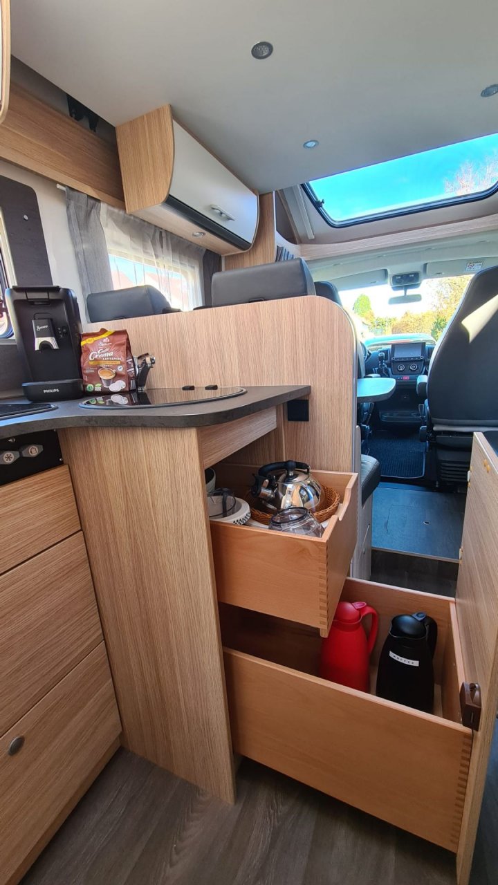 | Camping/Liegestühle mit Fußauflage | DuoControl Gasanlage mit Crashsensor | Fahrerhausverdunklung mit Plisee |